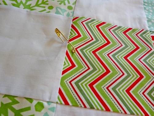 NOTE: To “pin baste” means to place large safety pins through both layers to hold them together. About every 5-6″ apart is good.
