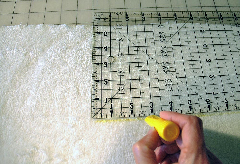 - From your plush fabric, cut one 51″ x 51″ square. Set aside.