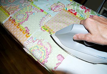 - Flip up the side panels and lightly press in place. The raw edges of your panels should be flush with the plush (hey …. that rhymes!). Remember, keep the direct heat of the iron away from the plush.