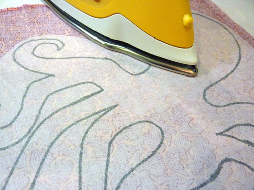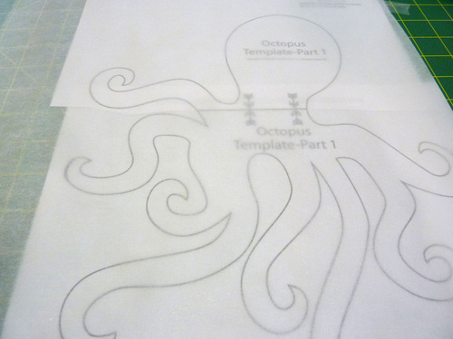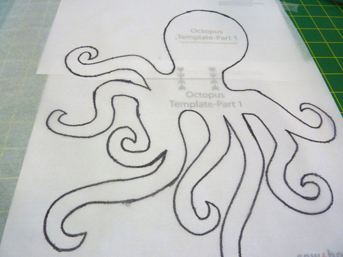 - Place the traced octopus FUSING SIDE DOWN on the fabric.