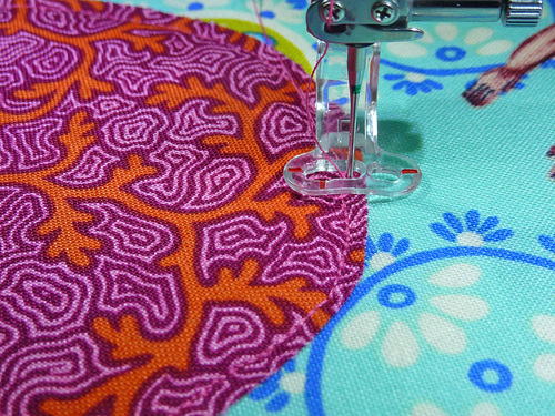 - Stitch in place, using a ¼” seam allowance.