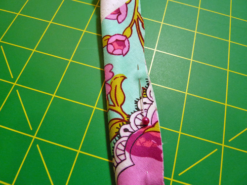 - Pin together your 2⅜“ bias strips to create a finished length of at least 75″.
