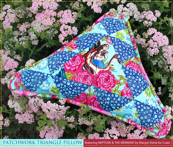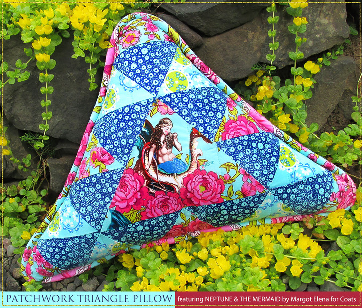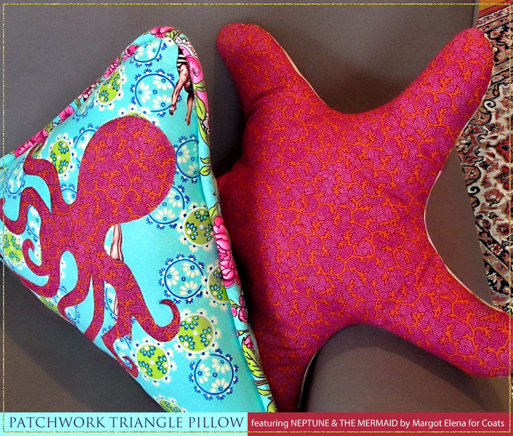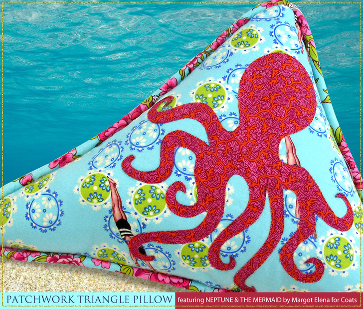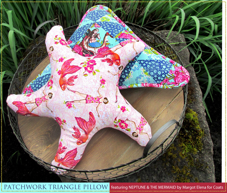 NOTE: Our yardage recommendations for the featured Neptune and the Mermaid fabric include extra to allow for the specific fussy cutting shown in our samples, such as centering the mermaid motif as the focal point of the triangle pillow.