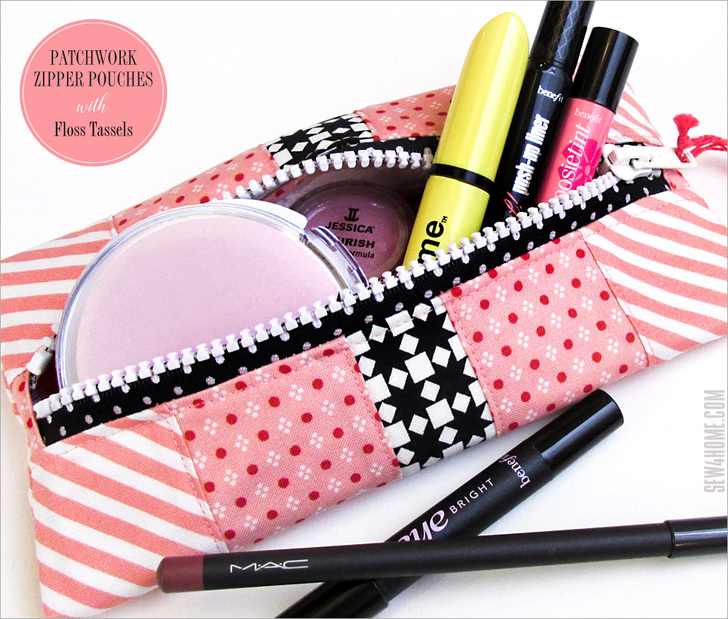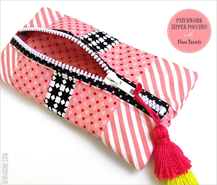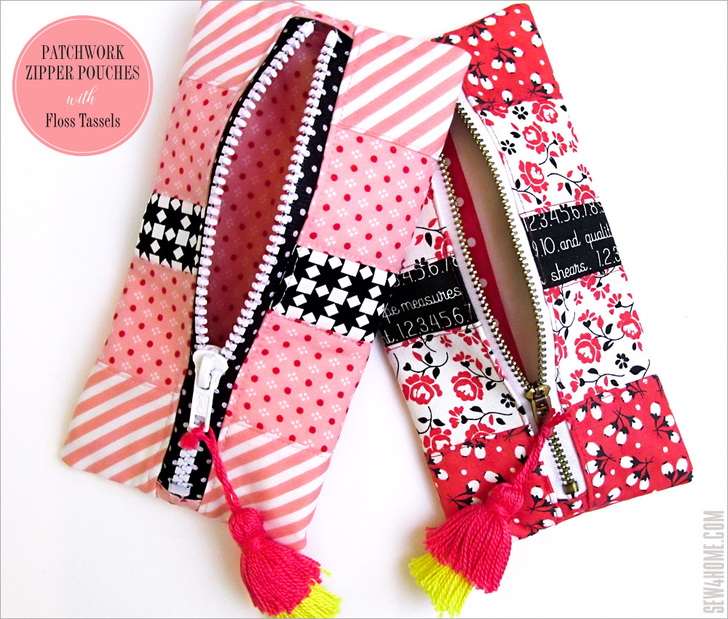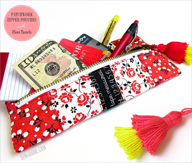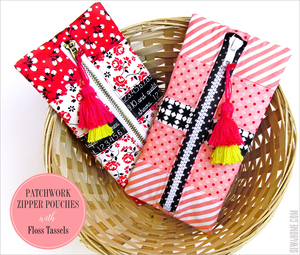 Cuteness alert! These pretty little pouches are a super ScrapBusters project. Use them for pencils, make-up, and more…just zip and go. It’s a great opportunity to feature a decorative zipper, such as the black and white polka dot option by Coats we used on our pink pouch. We also show you how to make a kicky double-tier tassel as a fun zipper pull.