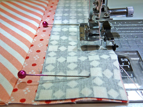 - Edgestitch along each patchwork seam, using a slightly lengthened stitch in a matching color.