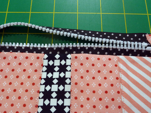 - Edgestitch each tab in place, running each short seam as close to the zipper stops as possible.