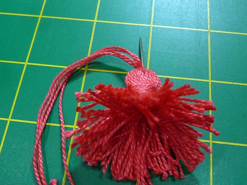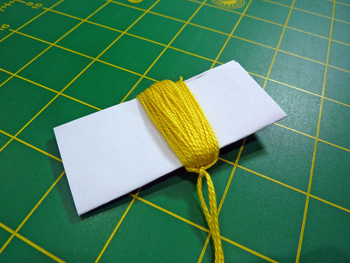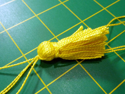 - Wrap the floss around several times then knot off to create the head and neck of the tassel.
