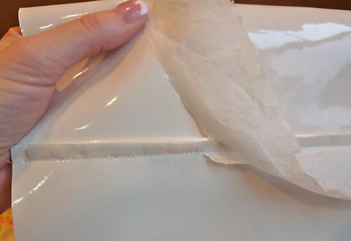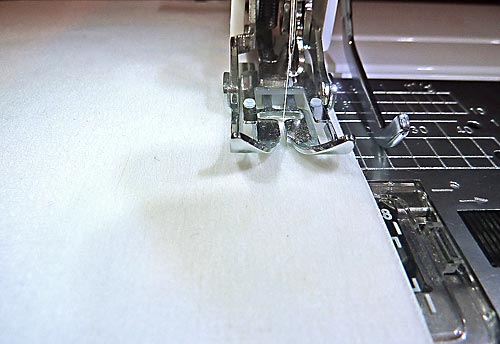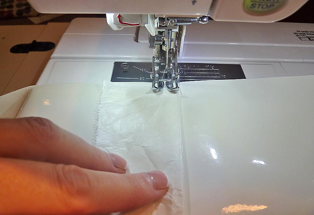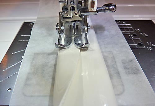 10. Place a piece of wax or parchment paper on top of the vinyl. You need just a thin strip the length of the panel. This will help the foot move across the vinyl.