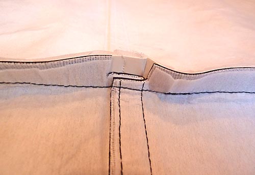 4. Press the opening in the lining flat, so the raw edges are flush with the sewn seam. Pin and edge stitch closed.