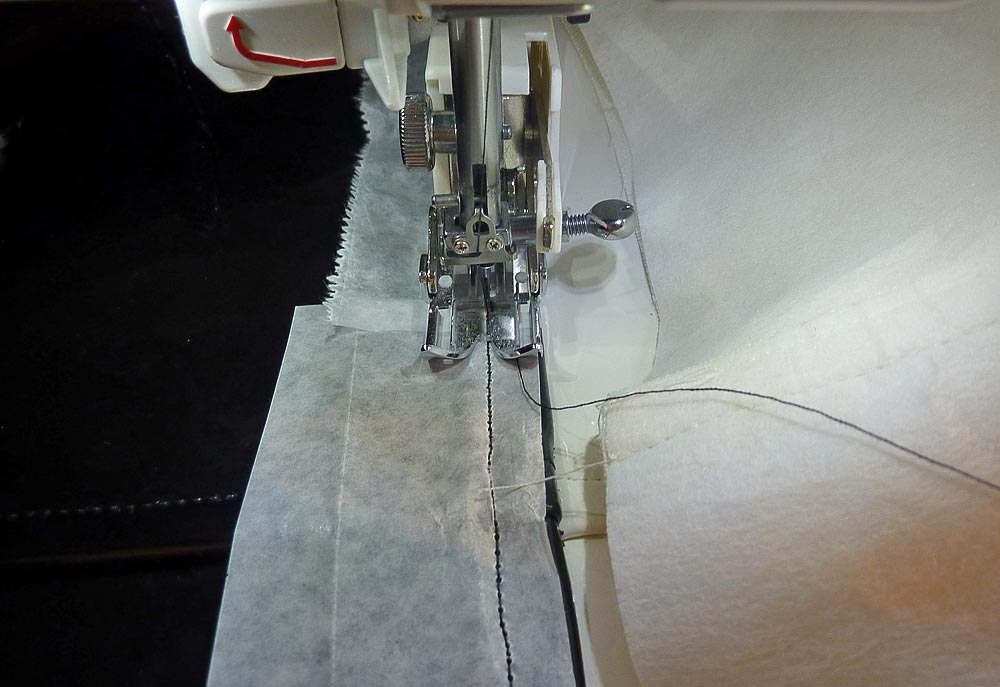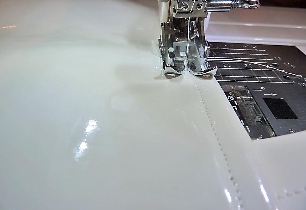 NOTE: We did not use wax paper for this final topstitching because the lining was against the machine’s feed dogs. Going slowly, our Walking foot’s feed dogs were able to move across the vinyl. If you are not using a Walking foot, you will want to add a layer of wax or parchment paper.