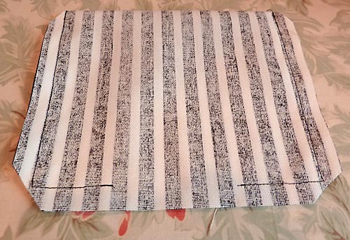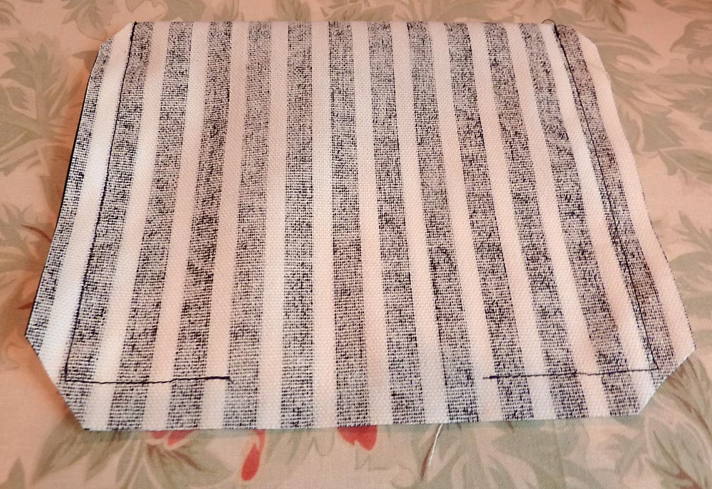 12. With the lining still wrong side out, the next step is to box the bottom corners of the bag.