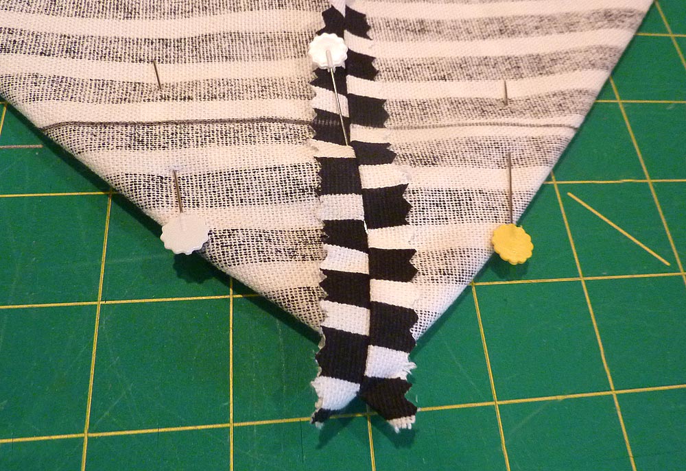 14. Clip your folded ‘peaks’ to hold them in place, and stitch along the drawn lines.