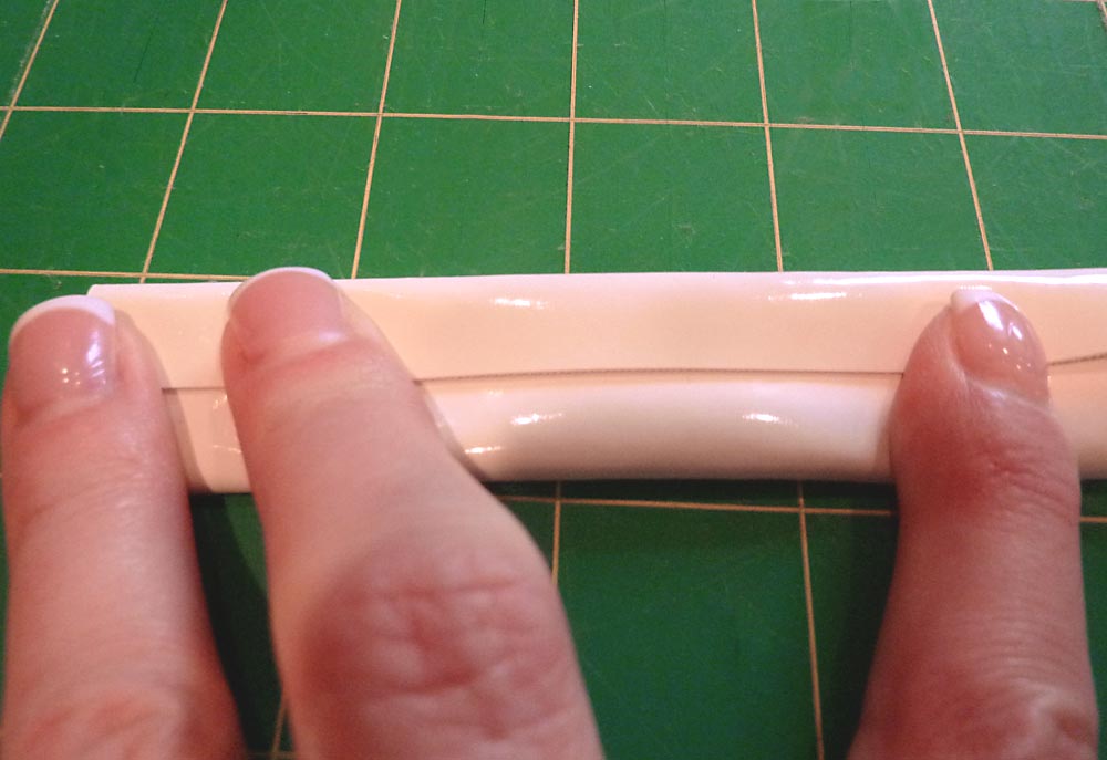 NOTE: There’s no need for any additional finish on this cut edge. It will not ravel or fray because of the vinyl. This is the inside edge. If you take a look at some of the purses in your closet, you may see this exact same finish. It’s quite standard on leather and vinyl because it is very hard (if not darn near impossible) to turn a leather or vinyl tube right side out… it will stick to itself!