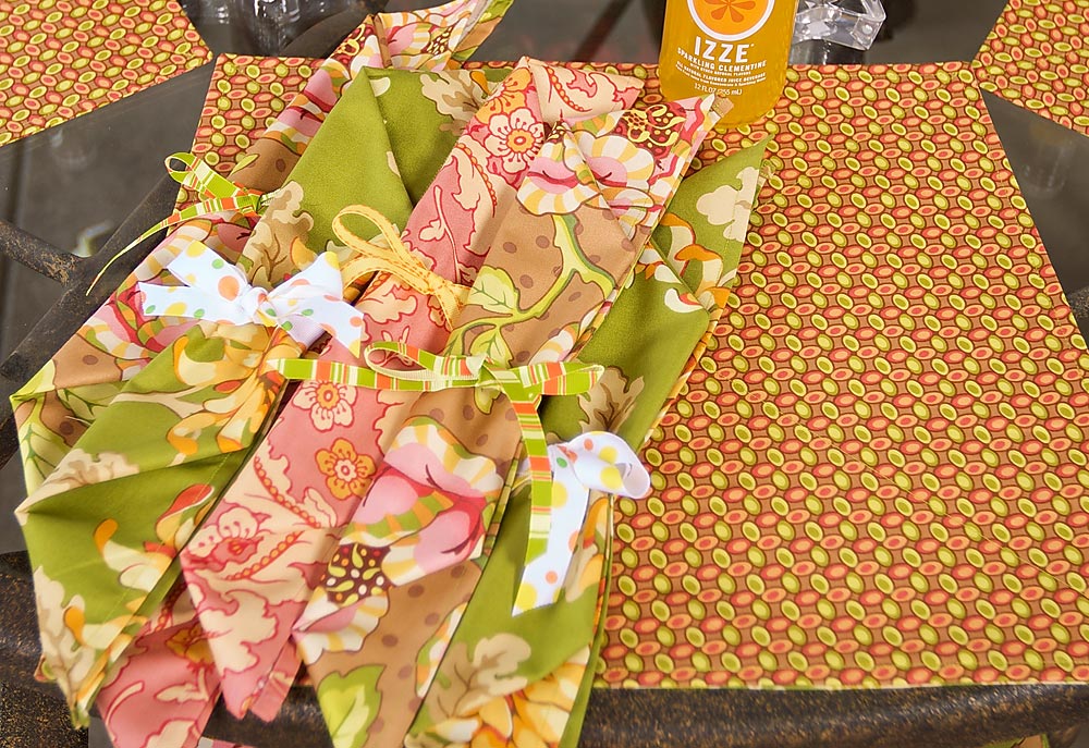 We used inexpensive grosgrain ribbon in bright coordinated colors to tie up the napkins, but you can also just simply fold the napkins.