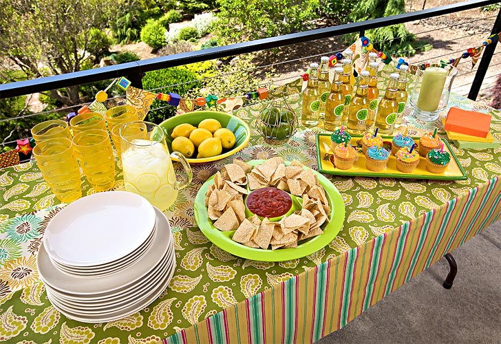 The unique ties at each corner look great and foil the wind by helping secure the tablecloth to the table.