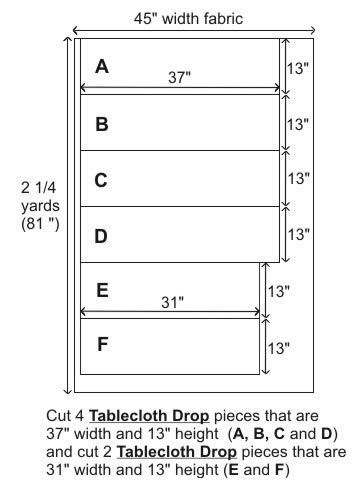 - You also have the two Tablecloth Drop pieces that were cut at 31″ x 13″. These two pieces stay as is.