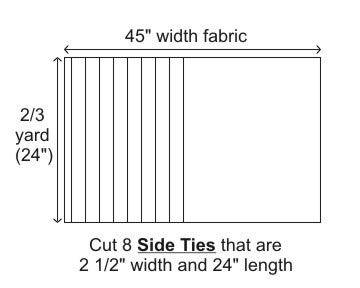 - Repeat for all eight ties. You will now have eight finished Side Ties that are 23″ length and about ¾” width, with one angled end and one squared-off end.