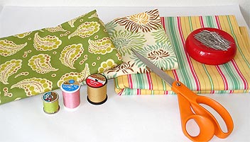 The book of Classic Picnic Decorating says one must always default to the red and white checked tablecloth. We say, “To heck with that!” Besides, there’s no such book! Instead, we invite you to create your own vibrant and stylish table covering. Our instructions take you through the steps to make a banded tablecloth, using three different fabrics.