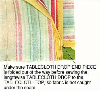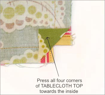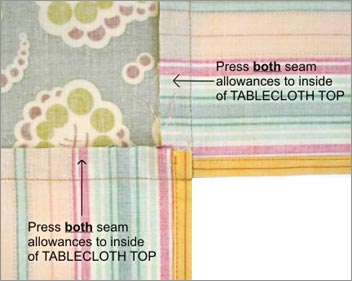 - Then press both seam allowances where the Tablecloth Drop pieces join the tablecloth top towards the inside of the tablecloth top.