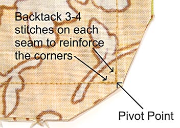 When sewing corners, try backtacking and sewing over a few stitches once you reach the pivot point of the next seam. This way, your corners will be better reinforced when you clip away fabric and turn them inside out.