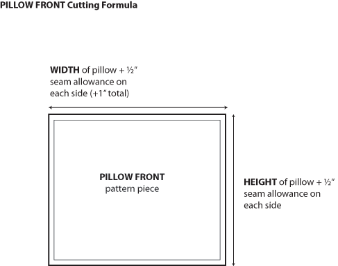Width of cut piece = full finished pillow width + 1″ (½” seam allowance on both sides).