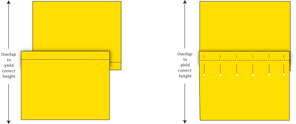 - Take both pieces and overlap the hems to yield the correct finished height (21″ in our sample). Pin hems together.