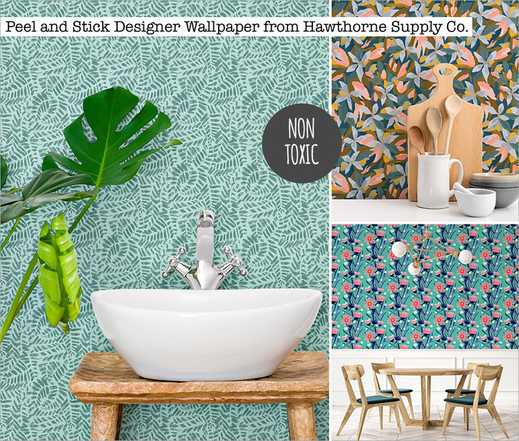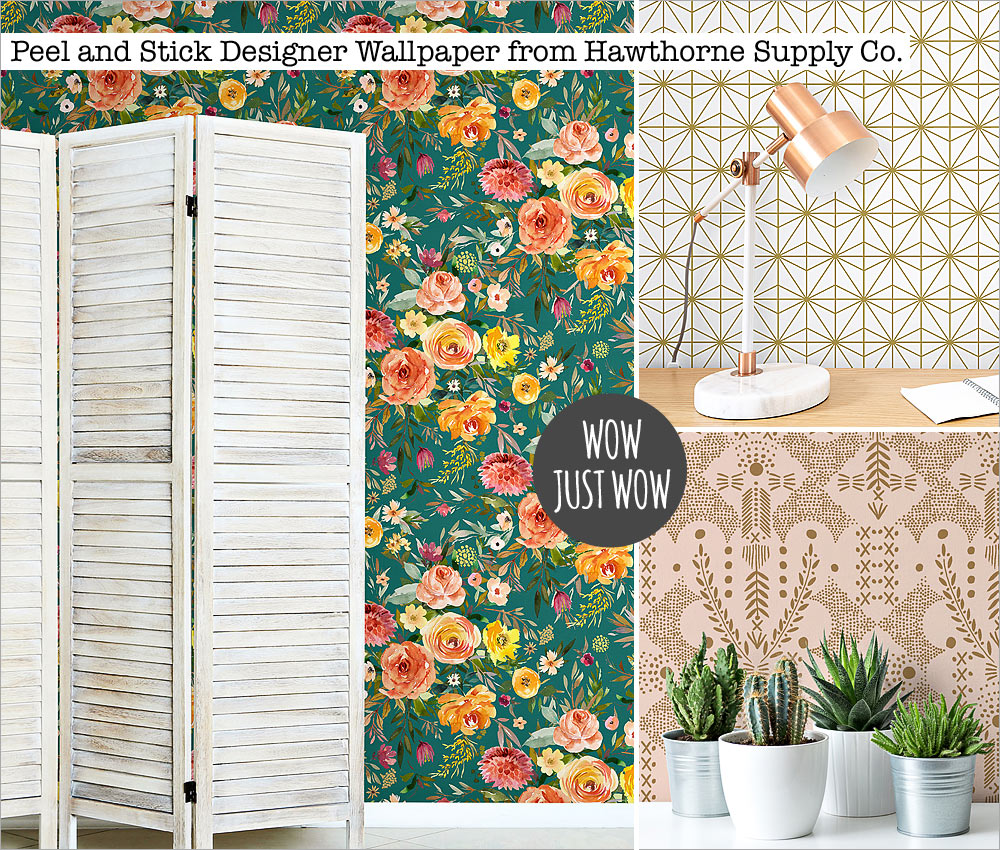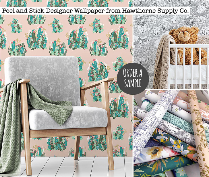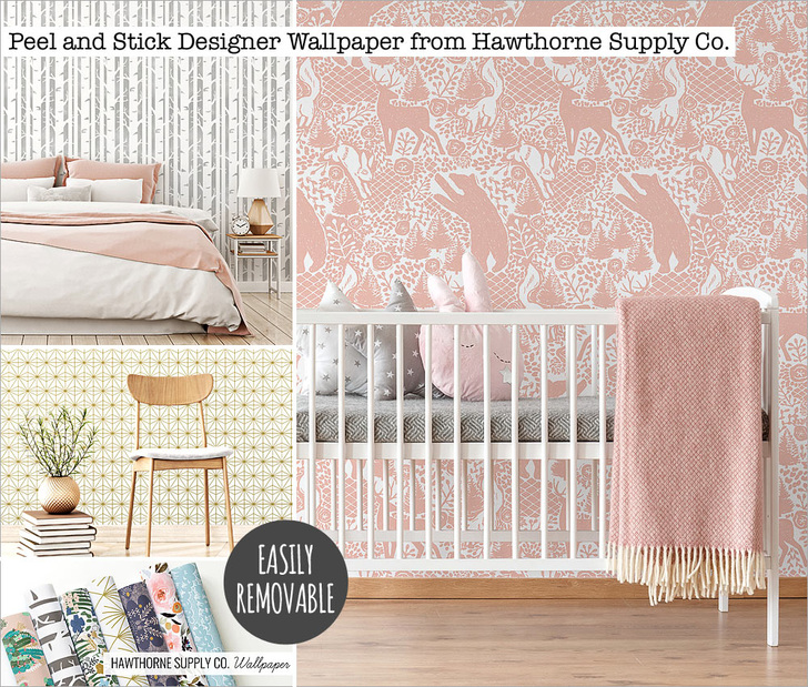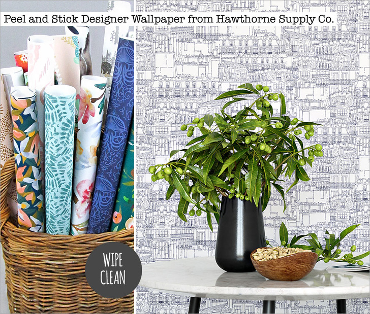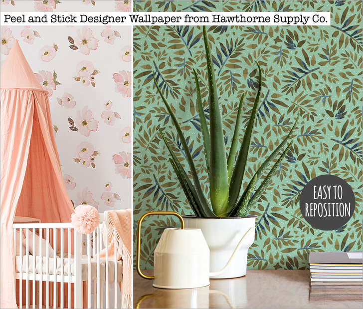 “Up against the wall.” “We’re stuck on you.” “If these walls could talk.” The introductory lines came fast and furiously for this article about the new designer wallpaper from Hawthorne Supply Co.. But what it finally came down to was: Wow. Just. Wow. We’ve always loved wallpaper – just not putting up wallpaper. In fact, the closest I’ve ever come to physically harming another person was during the installation of wallpaper in my son’s nursery. So when we saw the news this past November about the Peel and Stick Wallpaper from Hawthorne Supply Co., we were thrilled. Read on for all the details and direct links for shopping and buying. Because it’s from the creative minds at Hawthorne Supply Co., you know it will be easy to browse, of the highest quality, and pretty, pretty, pretty!