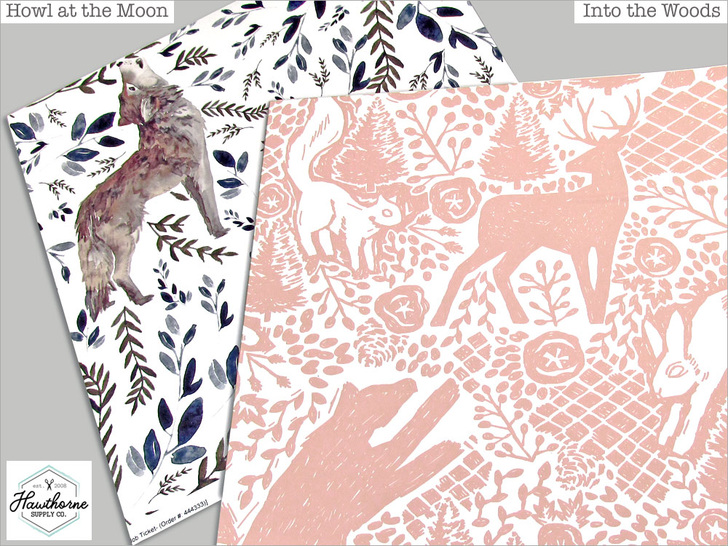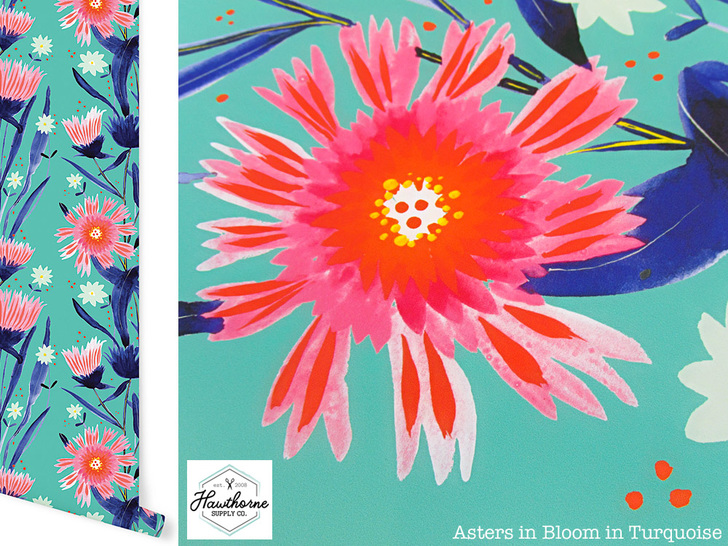There’s already a wide range of gorgeous designs from which to choose from the Hawthorne Supply Co. in-house creatives as well as designers Indy Bloom, Margaret Jean, Margie and the Moon, MontgomeryFest, and Shopcabin. In several cases, if a design was originally released for fabric substrates, its size has been increased for the best, bold look in the larger wallpaper format.