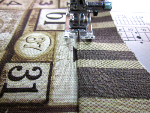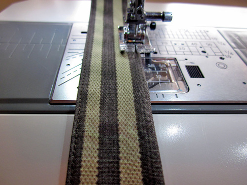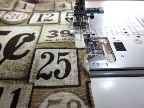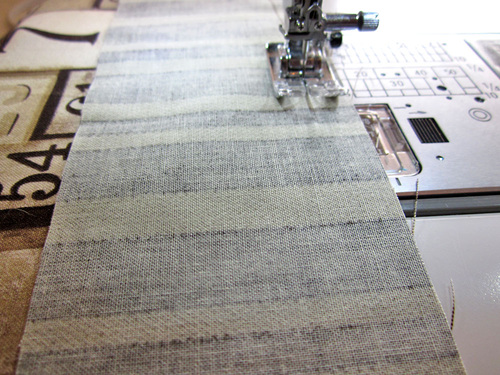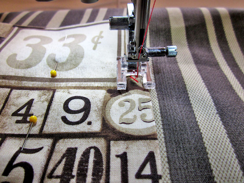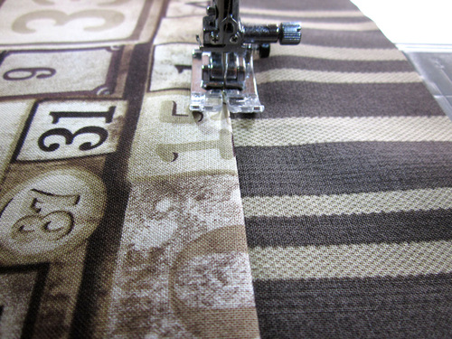 - Flip over the sewn panel. Switch to your accent thread in the top – the bobbin color can stay as-is.