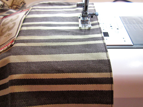 - Stitch each pocket in place along both sides and across the bottom. This decorative seam also closes the openings left for turning.