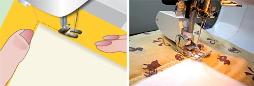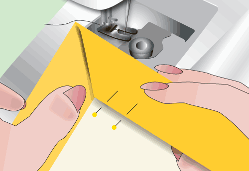 NOTE: By “around the corner” we mean you should drop your needle in at the end of your original line of stitching, stitch into the corner, pivot, and then stitch down the new edge. This way, your line of stitching around each corner will appear uninterrupted.