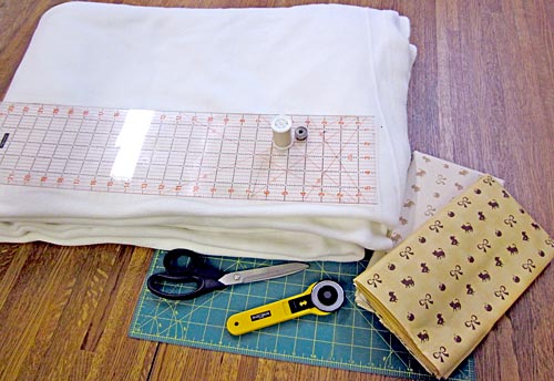 1. Lay out the 58″ x 90″ fleece fabric. Trim as needed to make sure your edges are straight and true so the corners of the binding will form pretty 90˚angles.