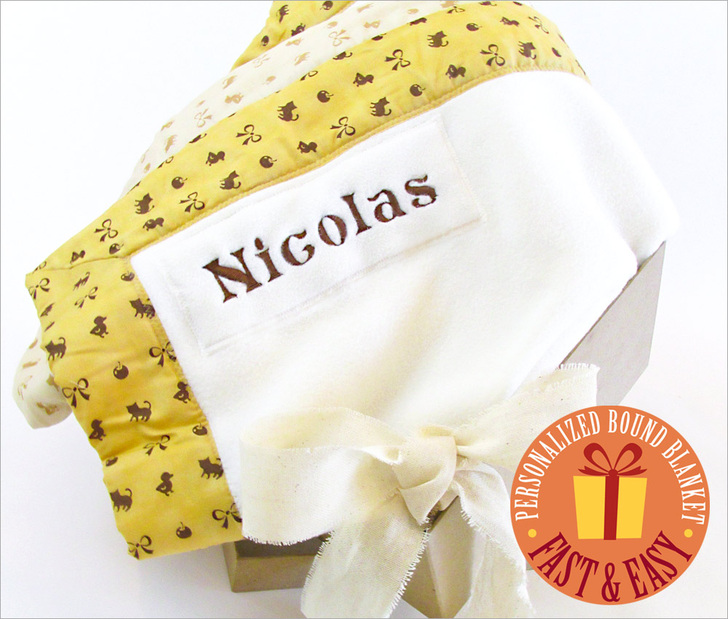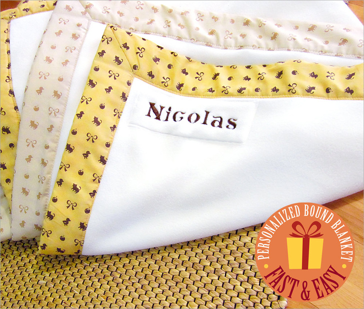 1. We personalized our blanket with an embroidered name in the top left corner.