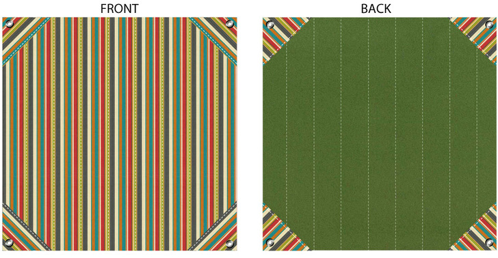 We consider the top to be the outdoor fabric, which is water resistant as well as stain resistant (kind of important when using it for picnics)… and the collections are available in so many cute colors and patterns. A stripe is a fun option because you can play with the direction of the stripes, allowing the corner accent triangles to pop.
