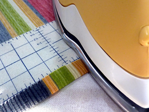 - Find the eight triangles. Fold under the diagonal edge of each triangle ½”. Press well.