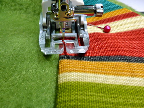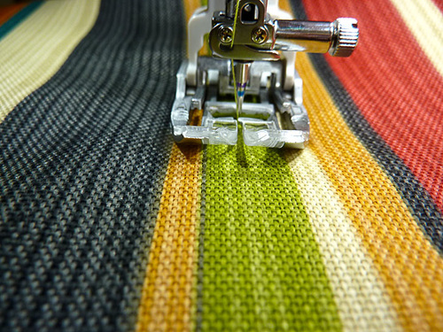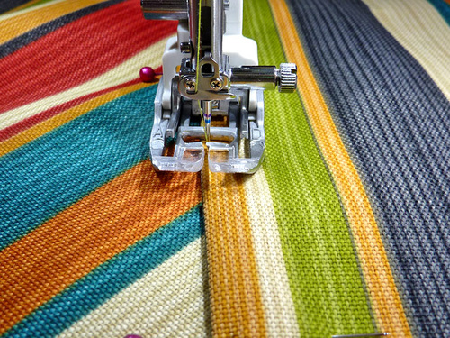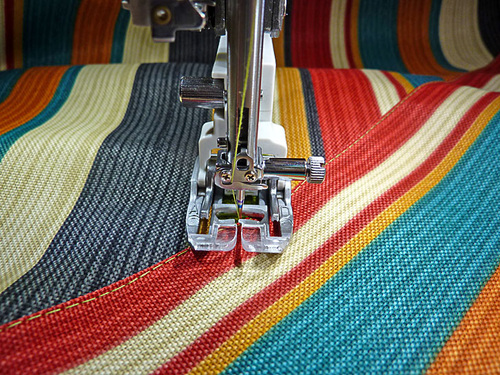 - Thread the machine with thread to best match the outdoor fabric in the top and bobbin. Slightly lengthen the stitch.