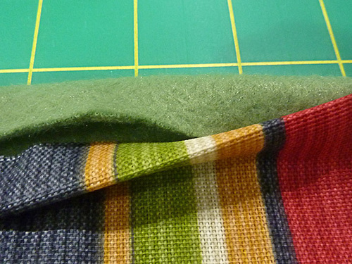 Although you could certainly opt for any type of fabric that can withstand outdoor use, we used and recommend a combination of outdoor fabric and polyester fleece for the top and back layers. Now’s the perfect time of year to find a huge selection of outdoor fabric at online and in-store retailers.
