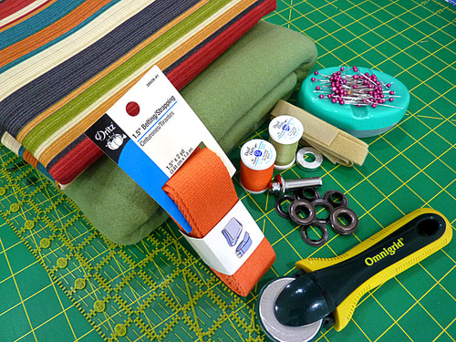 - 1½ yards of 1½” wide belting or similar for the carry wrap; we originally used 1½”Dritz Belting (which comes in handy 2 yard packages) in Orange
