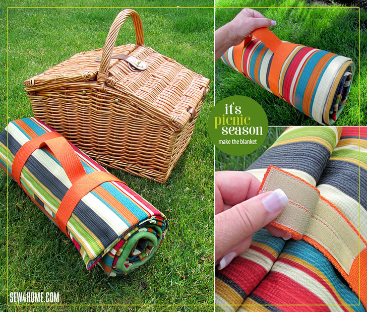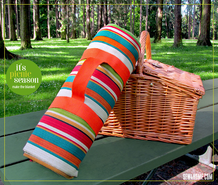 Normally, outdoor fabrics are not meant to be machine washable. It can remove the protective coatings that help keep them from fading in the sun and molding in the damp. However, a picnic blanket is not meant to be left out in the elements for days on end, so fading and molding aren’t the concerns they might be with pillows or cushions left out all season. You can launder the blanket in cold water with mild detergent on a gentle setting. If you’re new to working with outdoor fabrics, you may also want to take a look at our tutorial outlining some basic outdoor fabric care facts.