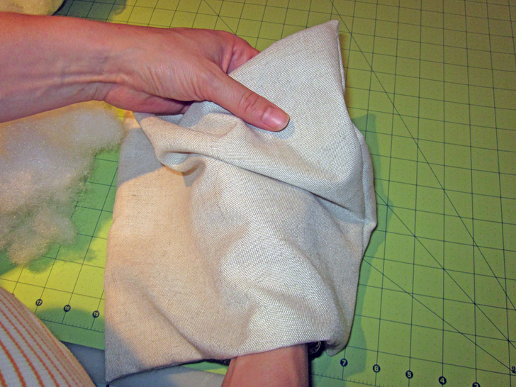 NOTE: If this technique seems to make your pillow too thick, you can try a single layer of just batting or just lining instead of using both.