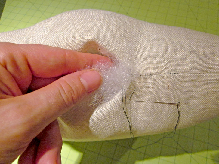 - As you sew, continue to manipulate the fill so this final area is just as smooth as the others. You may find partially sewing the opening, then adding more stuffing just underneath, will help fill out the area.