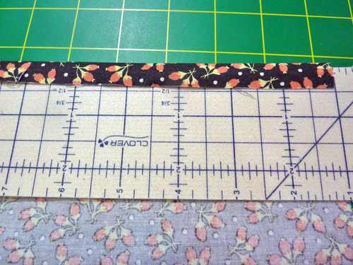 - Find the two flange strips. Fold each in half, wrong sides together, so they are now 1” x 21”.