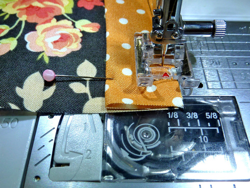 - Using a ½” seam allowance, stitch together. The longer end panel is shown below.