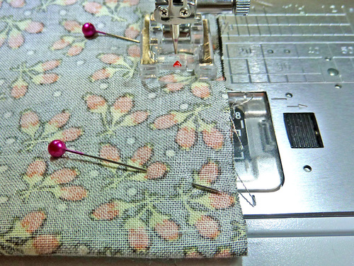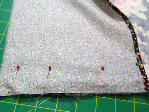- Align the raw side edges of the panels as well as raw bottom edges. Pin along both sides and across the bottom.
