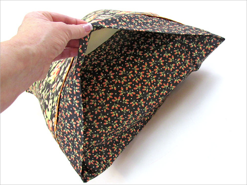 - Turn the pillowcase right side out through the end opening. Gently push out the corners so they are nice and sharp. A long blunt tool, such as a knitting needle, chopstick or point turner works well for this. Press well.