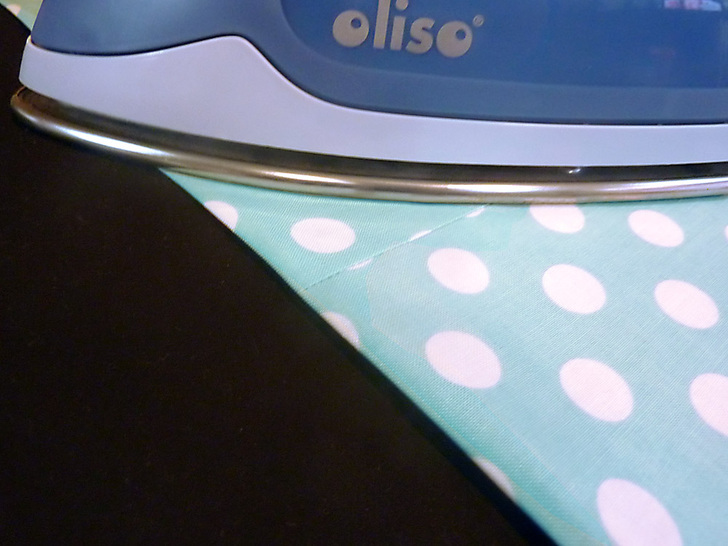 - Using a ½” seam allowance, stitch together. Press the seam allowance open. Re-fold in half.