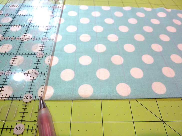 - Measure and mark a vertical line every inch the entire length of the fabric.