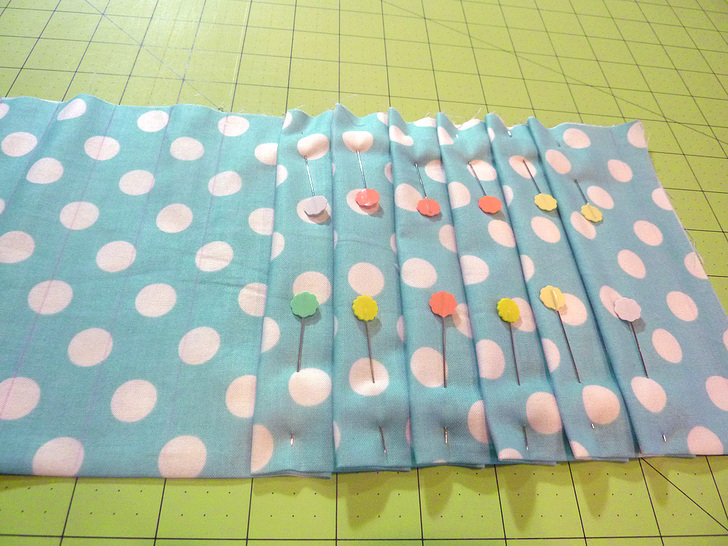 - Pleat the remaining marks, leaving just the very last pleat un-done to allow for any final adjustments that might be needed to fit the pleated ring to the main pillowcase body.