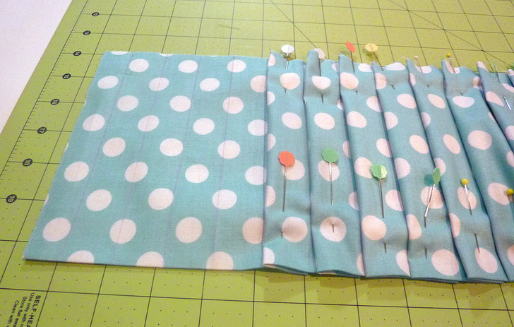 - Create 1″ knife pleats across the entire folded strip. If you are new to pleating, take a look at our step-by-step tutorial on knife pleats.