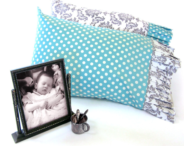 In our rush-around worlds, what is one the thing we want most? A nap! With work and home commitments, sleep often falls by the wayside. Make those precious few hours of shut-eye as beautiful as possible with our lovely pleated pillowcase pair. Originally, we planned to make two identical cases, but then thought, “Why not mix it up a little?” Why not indeed – it certainly makes things more fun and lets you put your fave out in front. Arrange the cases for how you feel: an elegant damask day or a frivolous polka dot day… or both. Most days are both!
